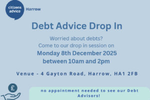 Citizens Advice Harrow is an operating name of Harrow Citizens Advice Bureau Services Ltd, a charity and company limited by guarantee. Registered office address: 4 Gayton Road, Harrow HA1 2FB. Charity registration number 1060926. Company registration number 3090292 (England and Wales). Authorised and regulated by the Financial Conduct Authority. FCA Authorisation Number: 617626 | Web design by Moocow Media
